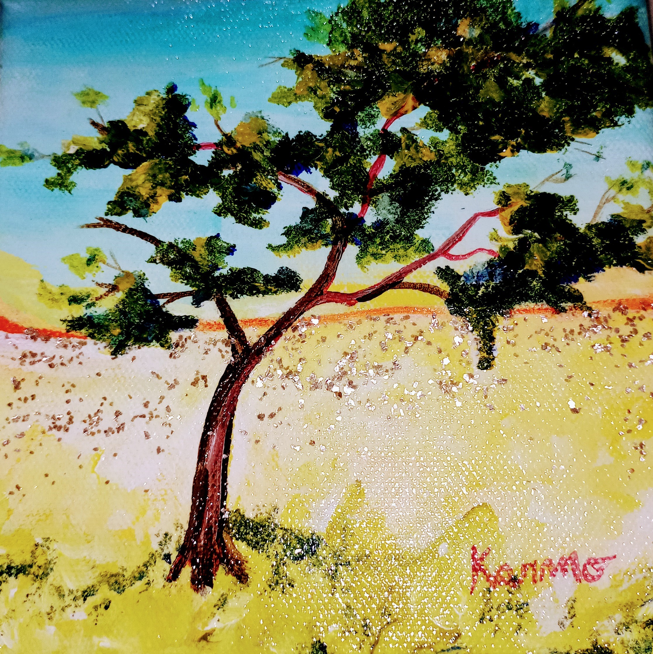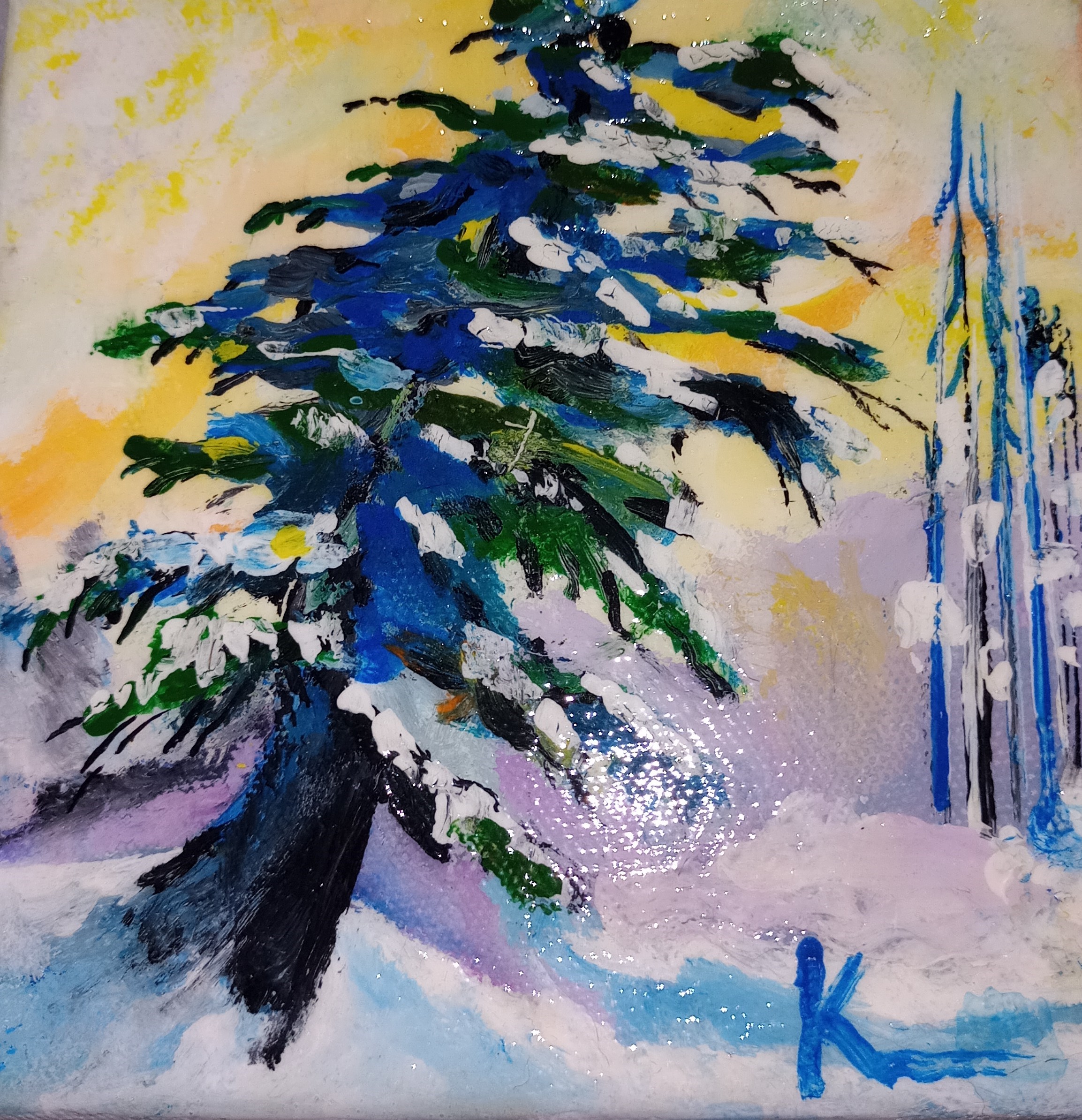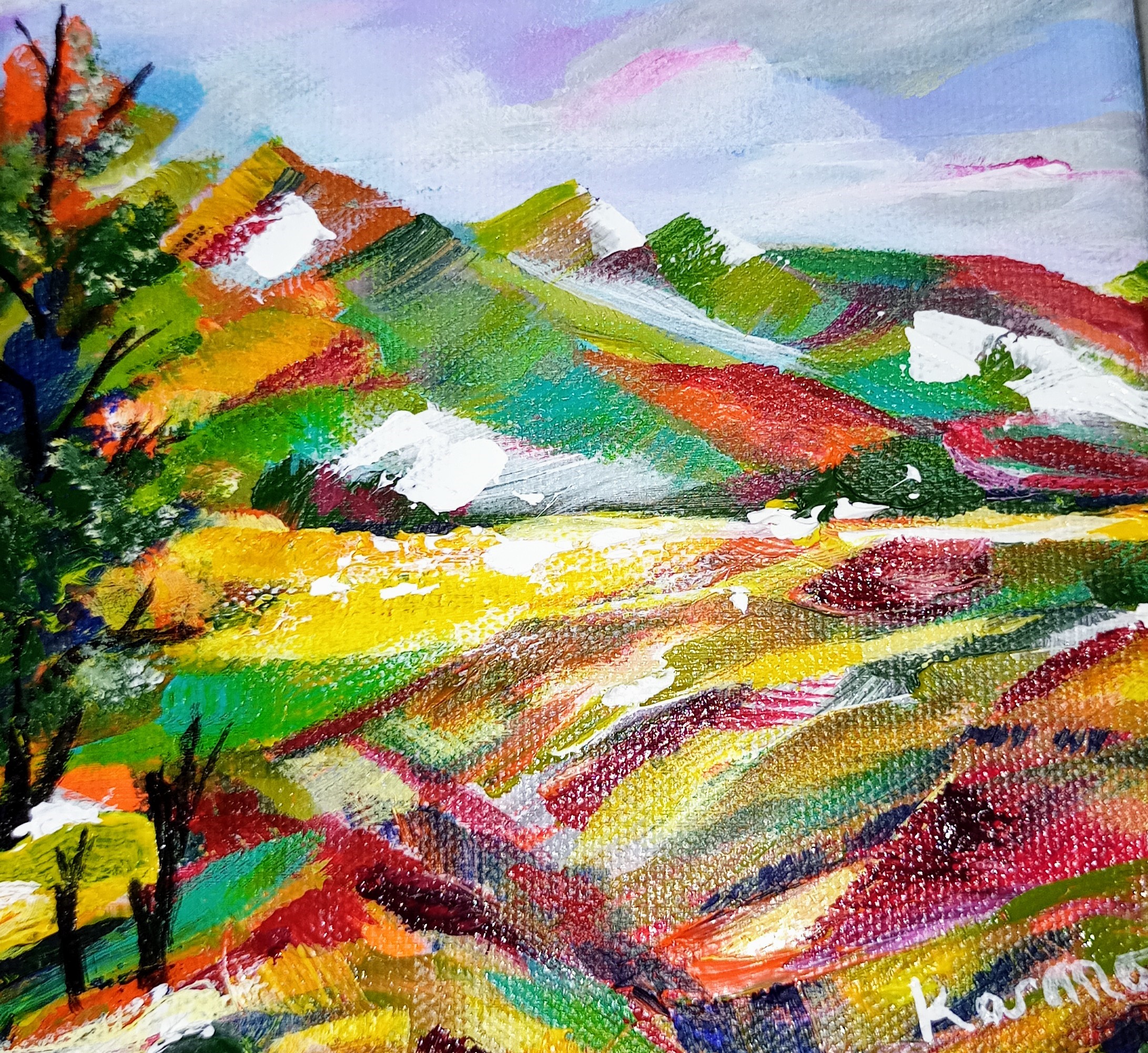 J’avais quelques petites toiles 6×6 pouces (environ 15.2 x 15.2 cm) sur une tablette de mon studio. Je les regardes et me décide, je les enduis de peinture, du plaisir et de la joie… voici le résultat que je partage avec vous le tout en acrylique!
